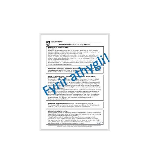 Auglýsingar þurfa að berast fyrir kl. 10:00 mánudaginn 11. apríl fyrir blaðið sem dreift verður daginn eftir.