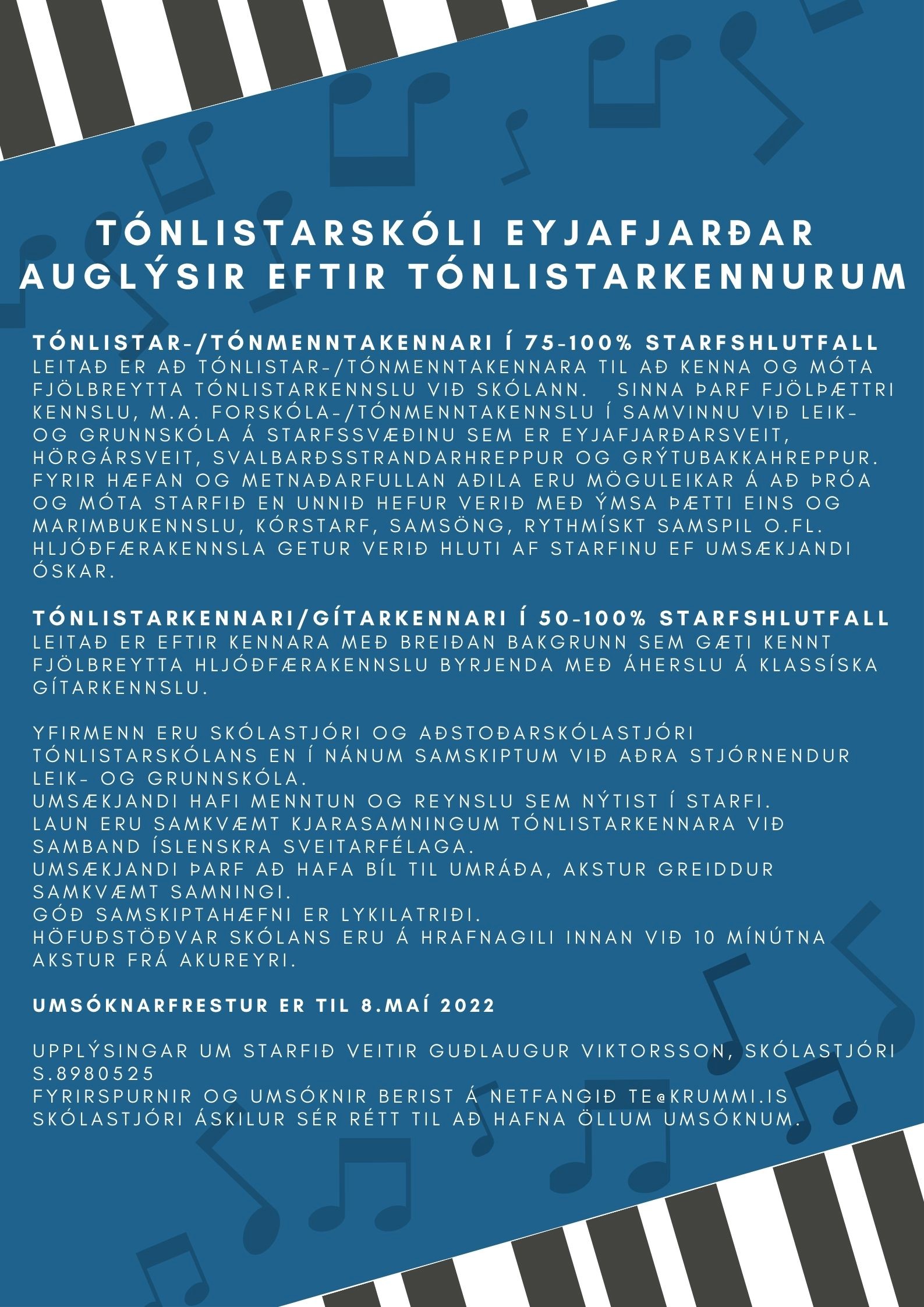 Tónlistarskóli Eyjafjarðar auglýsir eftir tónlistarkennurum