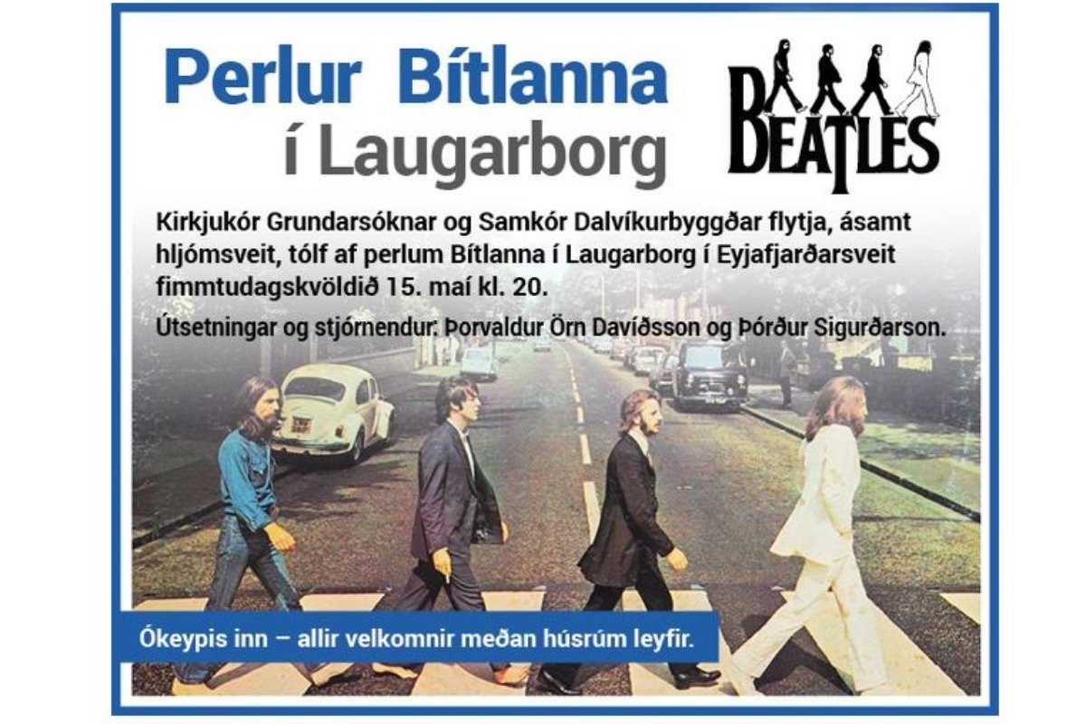 Kirkjukór Grundarsóknar og Samkór Dalvíkurbyggðar flytja, ásamt hljómsveit, tólf af perlum Bítlanna í Laugarborg fimmtudagskvöldið 15. maí kl. 20:00. Útsetningar og stjórnendur: Þorvaldur Örn Davíðsson og Þórður Sigurðarson.