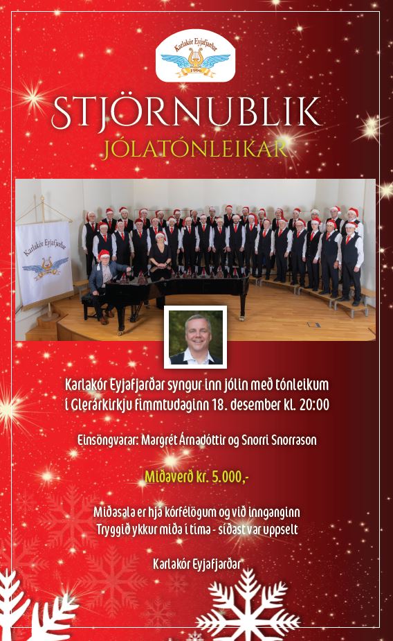 Karlakór Eyjafjarðar syngur inn jólin með tónleikum í Glerárkirkju fimmtudaginn 18. desember kl. 20:00.