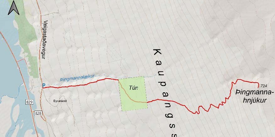 Uppgöngustaður: Við afleggjara upp að Eyrarlandi á Veigastaðavegi.