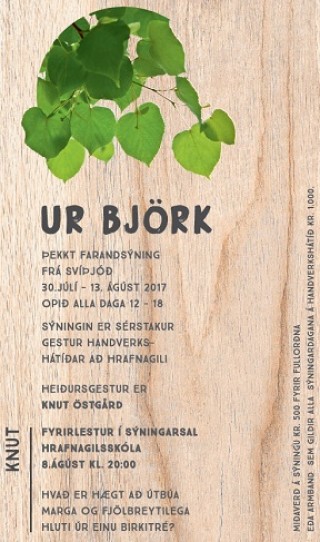 Sunnudaginn 30. júlí kl. 12 opnar sænska farandsýningin UR BJÖRK, eða úr birki, í Hrafnagilsskóla. Að sýningunni standa 22 handverksmenn og -konur sem skiptu á milli sín heilu birkitré og fengu það hlutverk að nýta allt efnið með frjálsum huga og höndum. Það tók hópinn 6 mánuði að vinna alla þessa 400 muni og það skal tekið fram að allt var nýtt af þessu tiltekna tré sem var 30 cm í þvermál og 25 m hátt. Sænski heimilisiðnaðarráðunauturinn Knut Östgård er einn af aðstandendum sýningarinnar en Knut er sérstakur gestur á Handverkshátíðinni í ár.
