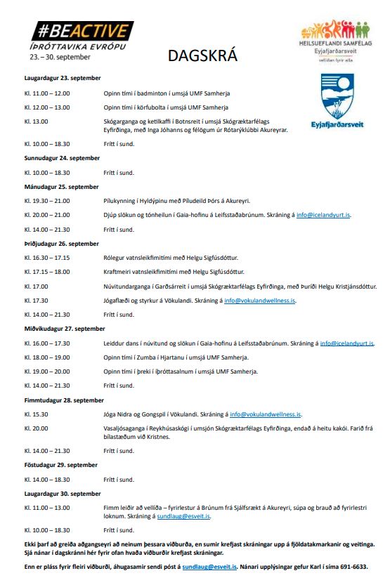 Klikka hér fyrir pdf skjal - Íþróttavika Evrópu - Dagskrá í Eyjafjarðarsveit