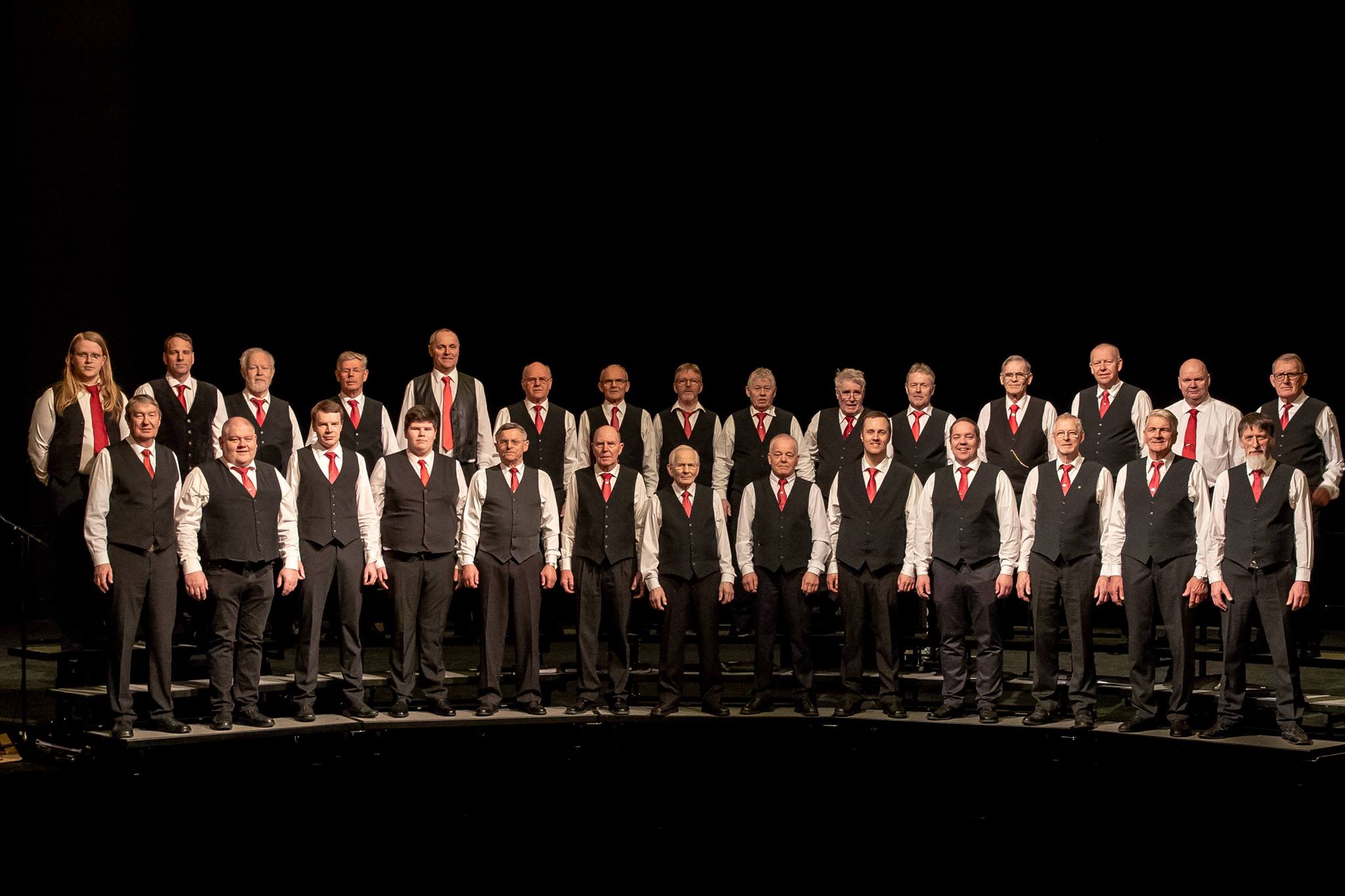 Kórinn aðstoðar fólk við að koma kræsingunum niður með hraustlegum söng.