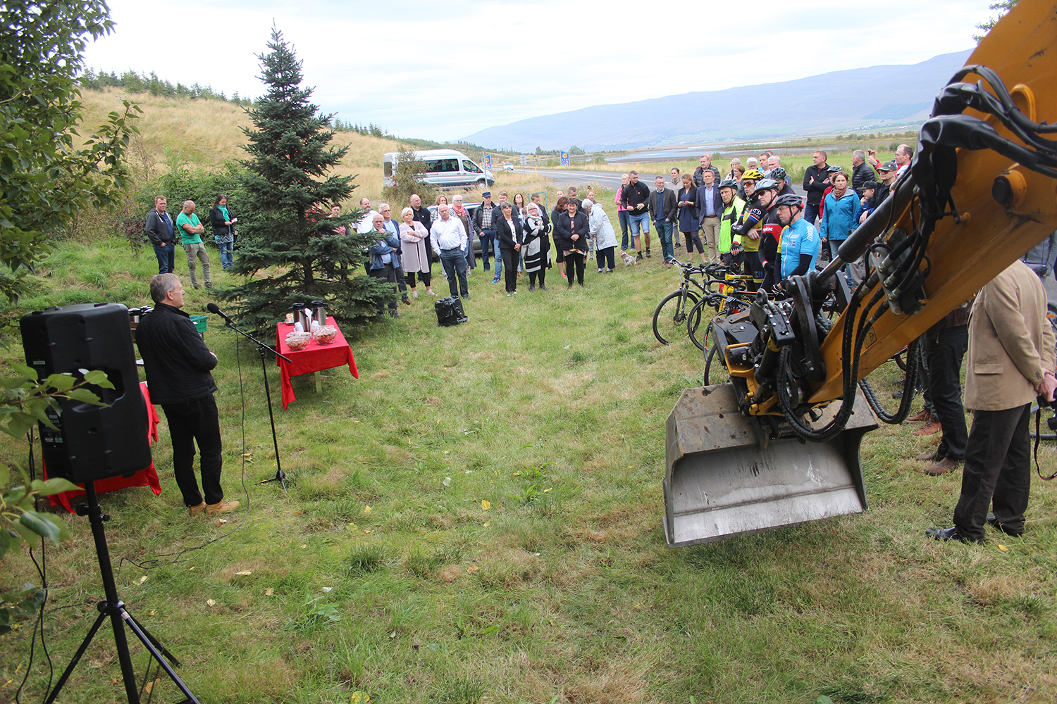 Til máls tók Jón Stefánsson oddviti. Hann bauð gesti velkomna og lýsti framkvæmdinni, aðdraganda og áætlun um umfang og framvindu verksins.